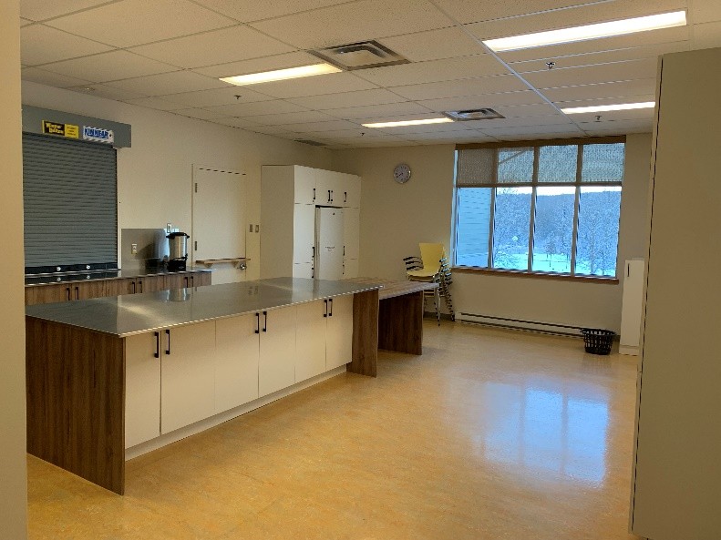 Complètement équipée et rénovée, elle dispose d’assez d’espace pour accommoder des cours de cuisine, des cuisines collectives, ou pour préparer de la nourriture pour les activités qui ont lieu dans d’autres salles du Centre. Une porte d’accès lie la salle Buchanan 2 à la Cuisine.